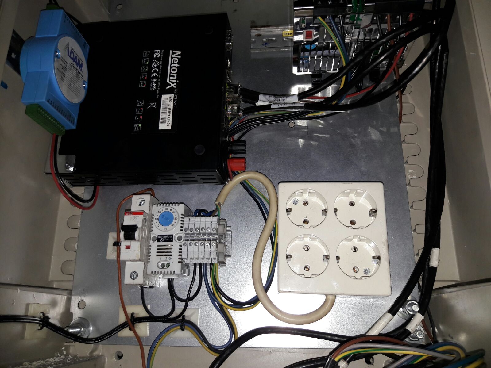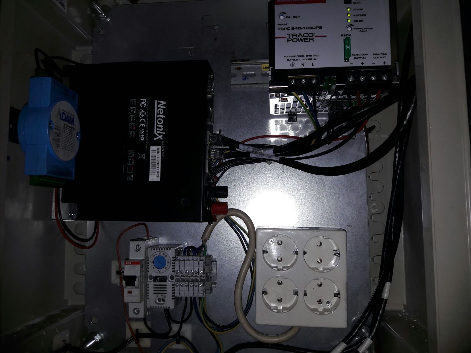 All central monitored by an SCADA solution that can read MODBUS (for ADAM 6050) and SNMP, for Netonix Switch and APs.
