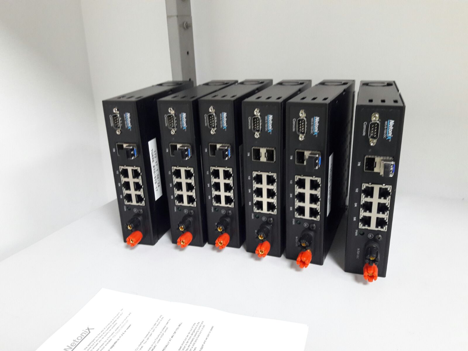 Netonix switches with DIN mount to power the APs and SFP uplink to CPD.