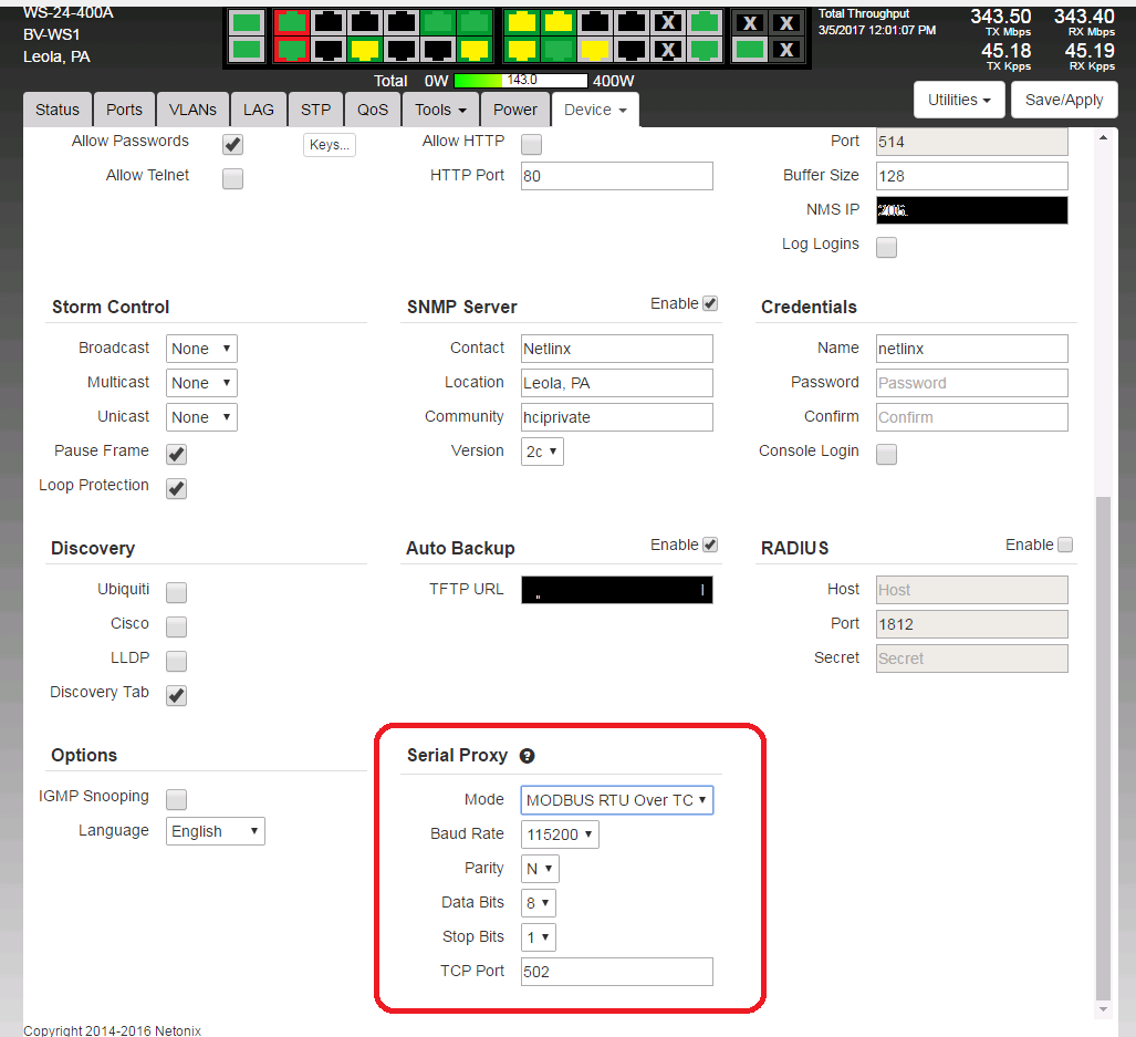About the MODBUS reading from the switch, can be a very very useful feature because SNMP normally is not supported by SCADAs, in fact I bought a special license for SNMP reading.