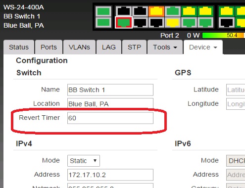 If you do not want this feature you can disable it by changing the value to "0" but obviously your changes are causing you to not be able to reach the switch so you will lose control.