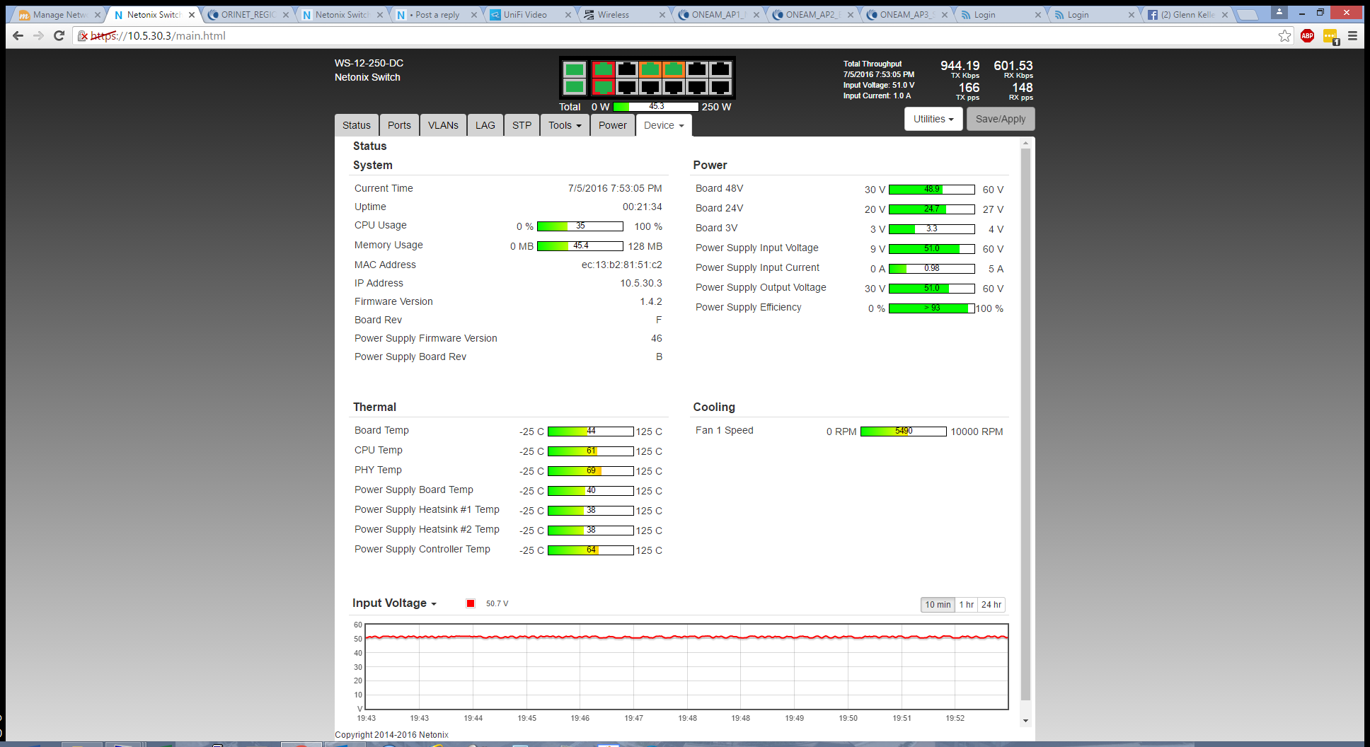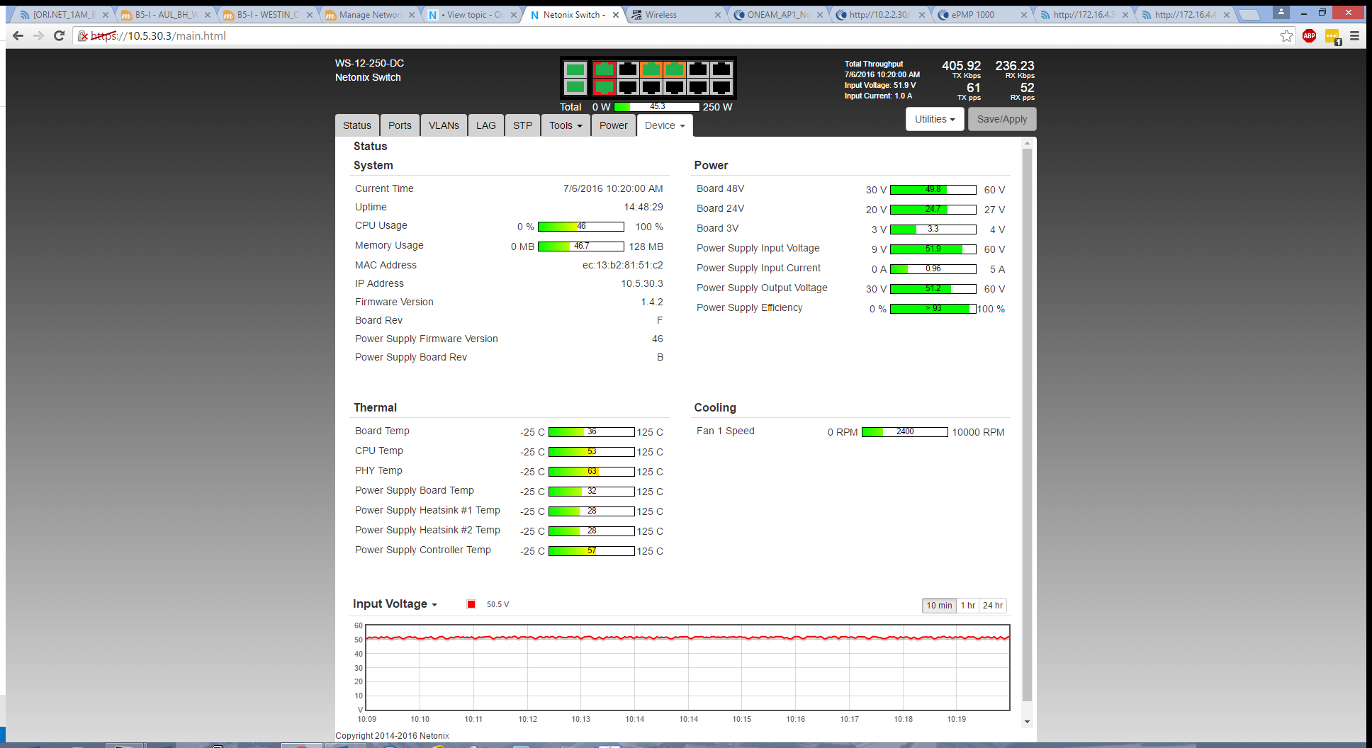 Jul 6 10:16:52 switch[1368]: Power Supply Output Voltage is out of range (51.2V)