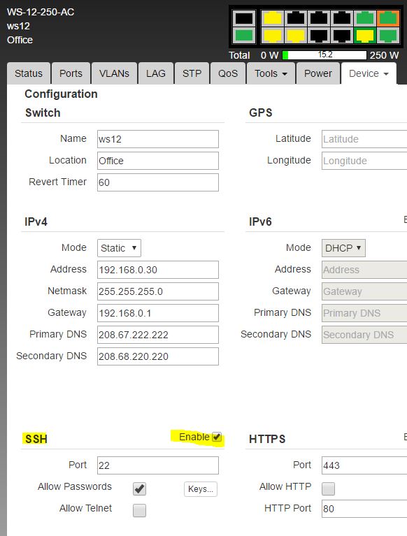 Is ssh enabled on the switch under Device -> Configuration ?