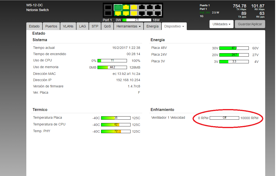 Fan does not turn on until Board temp is over 40C or CPU or PHY is over 100C