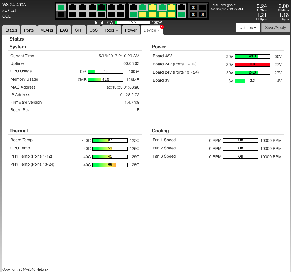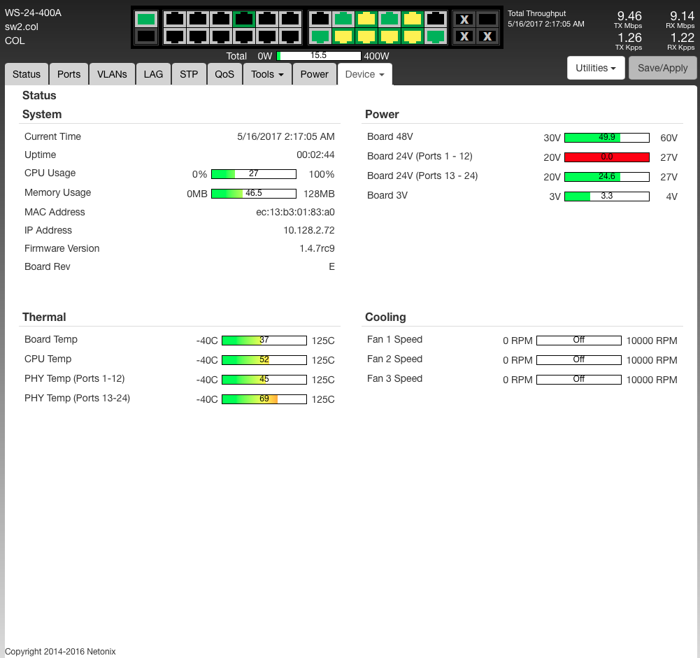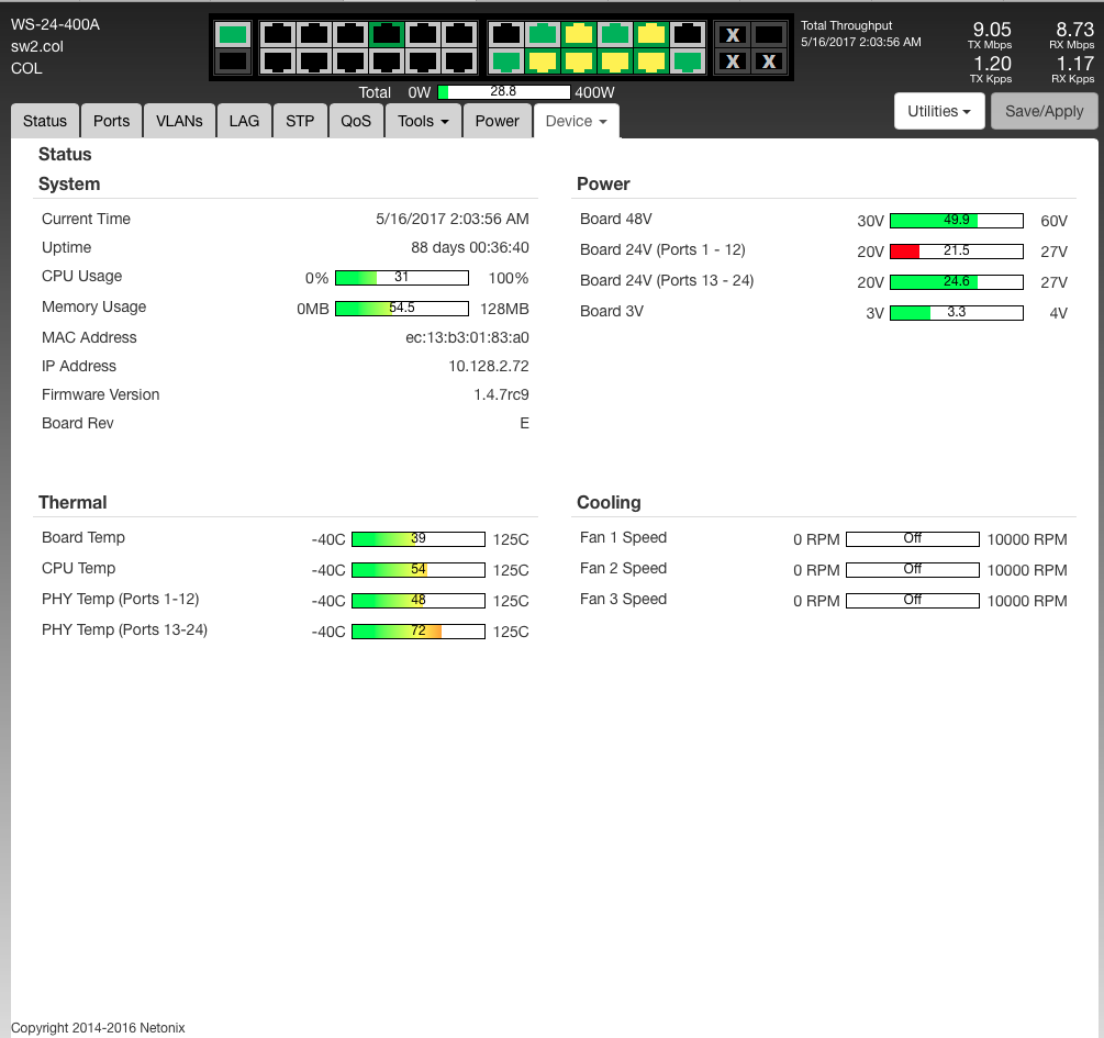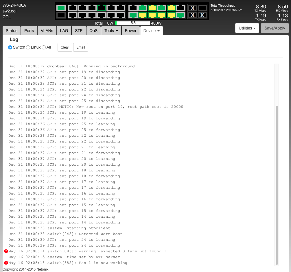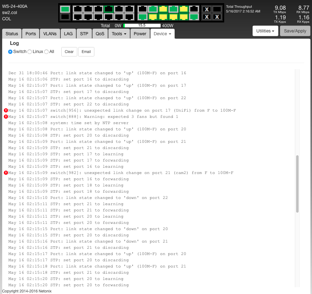 May 15 10:35:12 switch[888]: 24V is out of range (21.5V)
