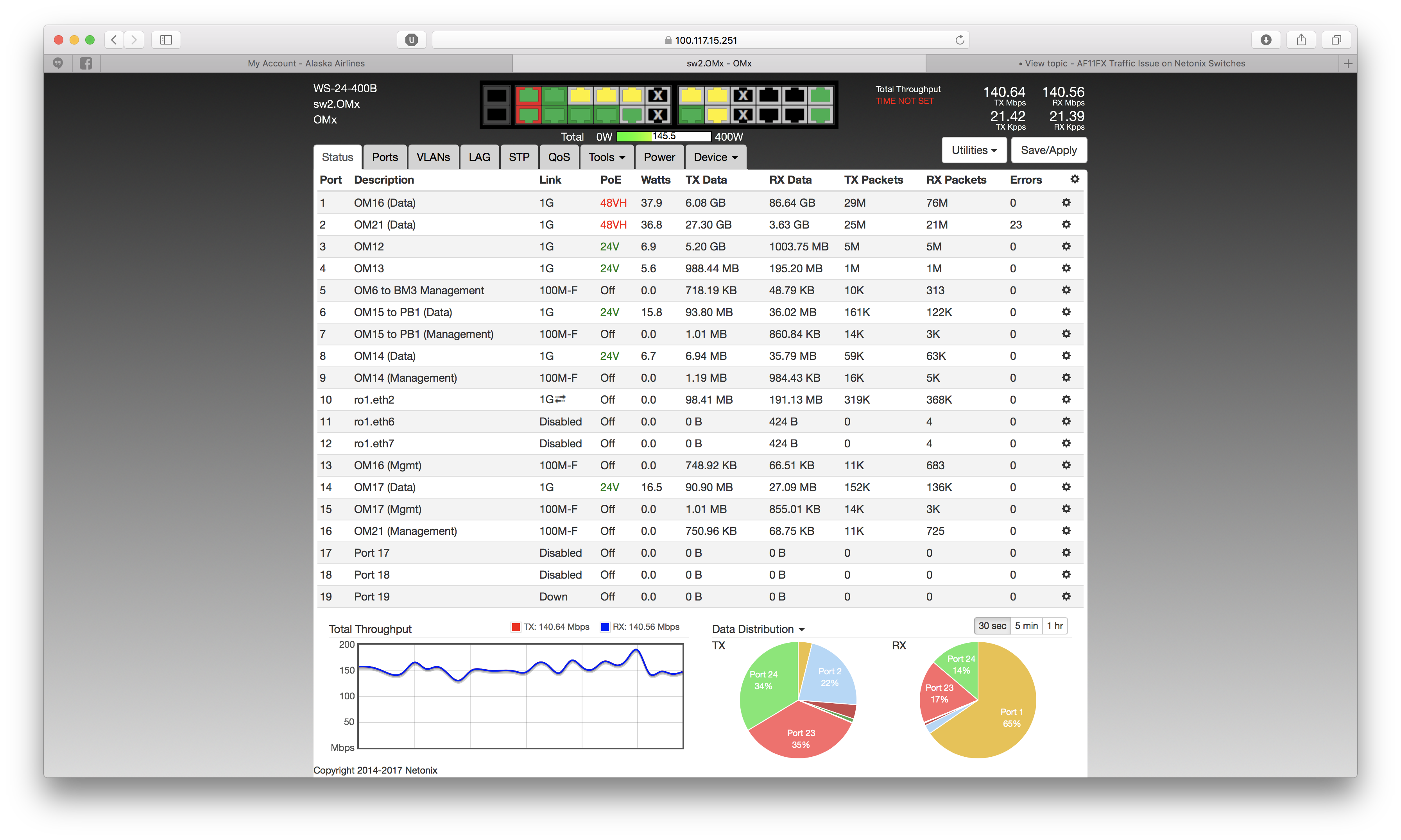 So far for troubleshooting we have physical swapped the AirFiber 11FX to no improvement, tested multiple firmware builds on the AirFiber 11FX with no improvement, checked and verified that the cables are operating at full 1Gbps and pass cable diagnostics, there are little to no port errors on either side of the link being reported in the Netonix interface. At this point any further software testing on the AirFiber feels like :headb: .