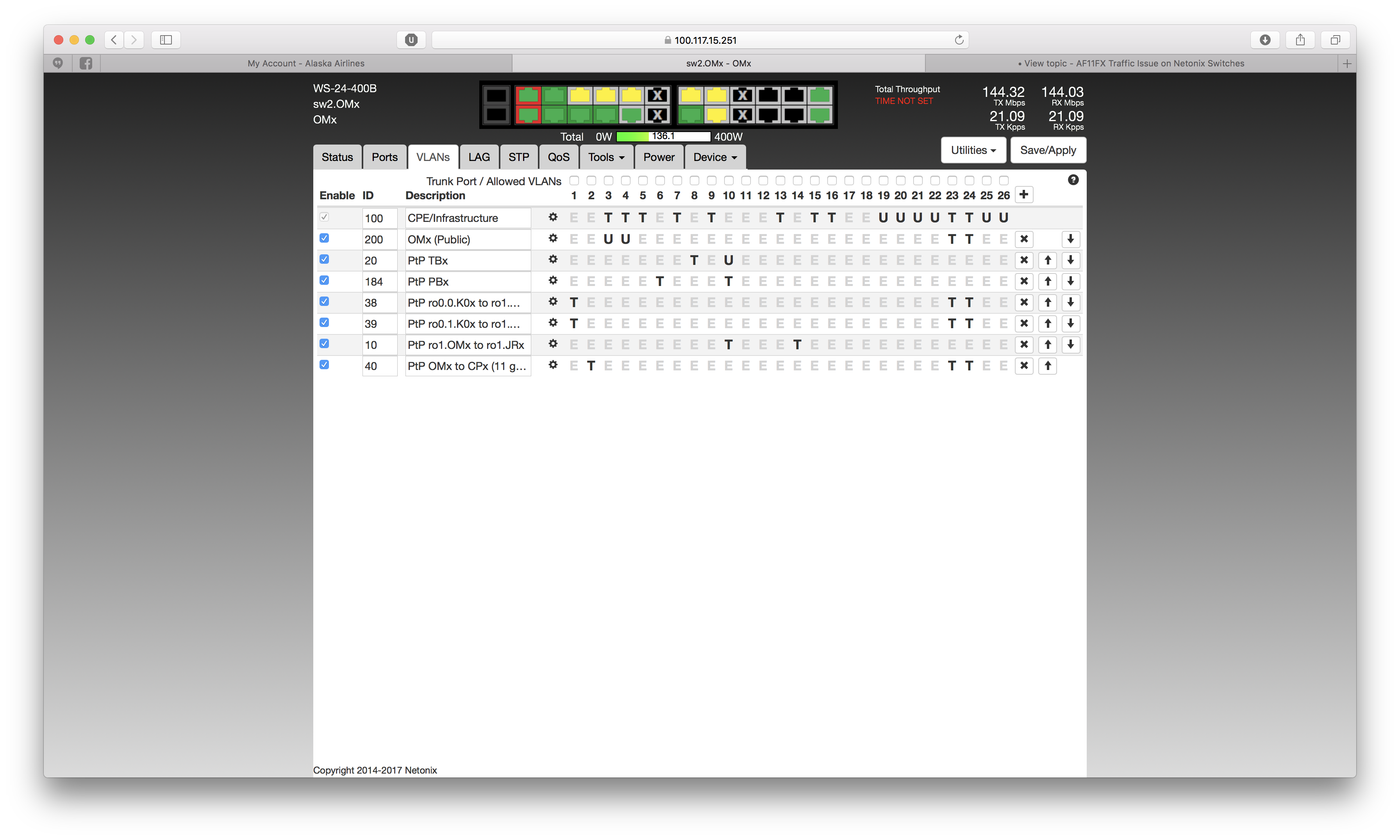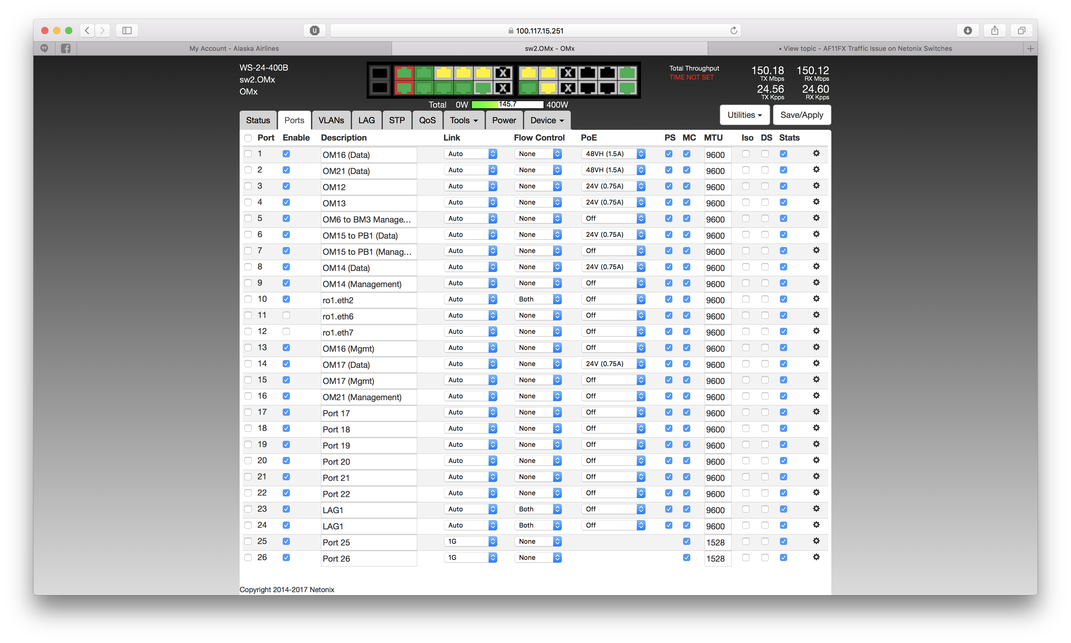 Ports 2 and 26 - Port 2 powers AF Port 26 with copper SFP goes to router port