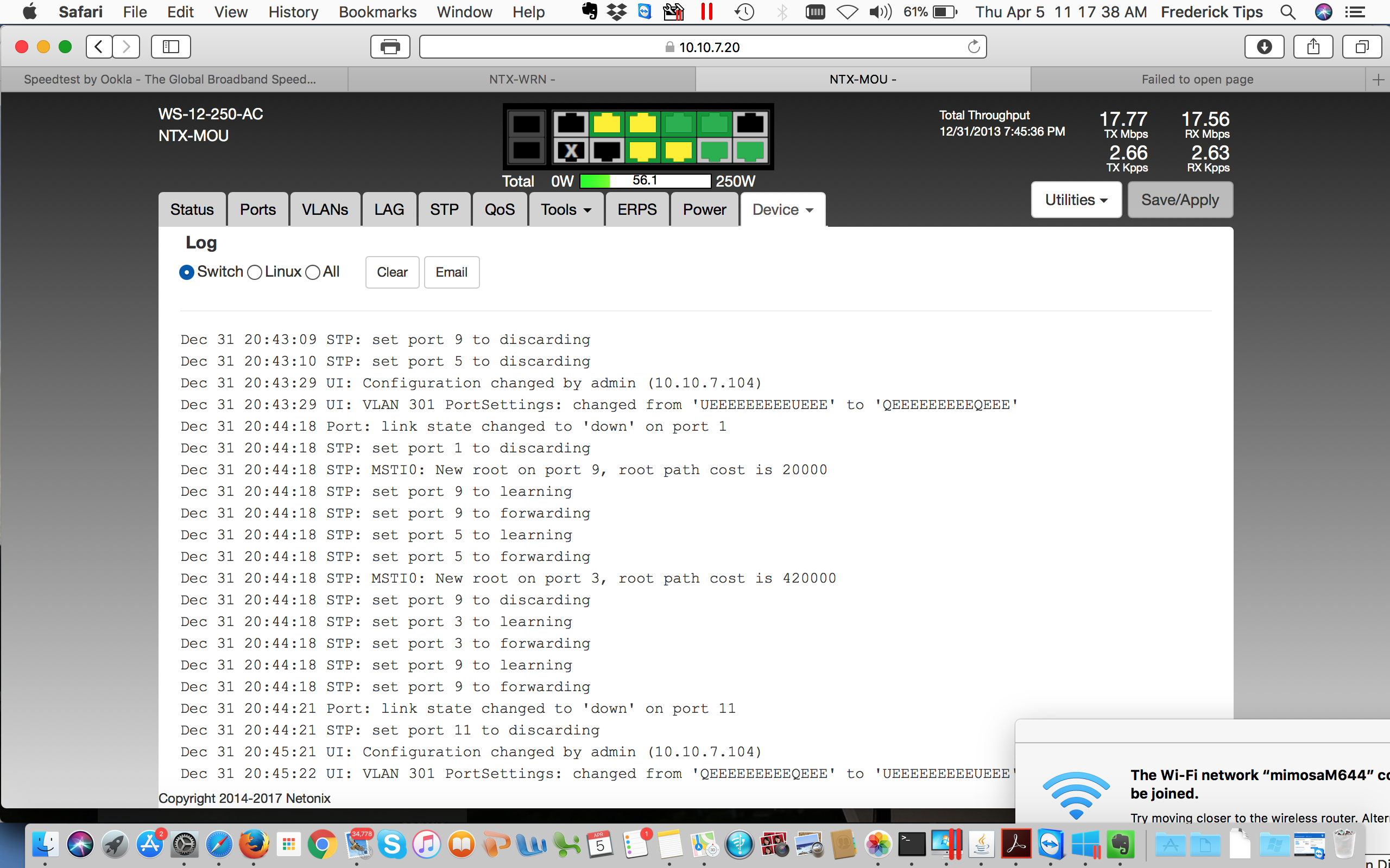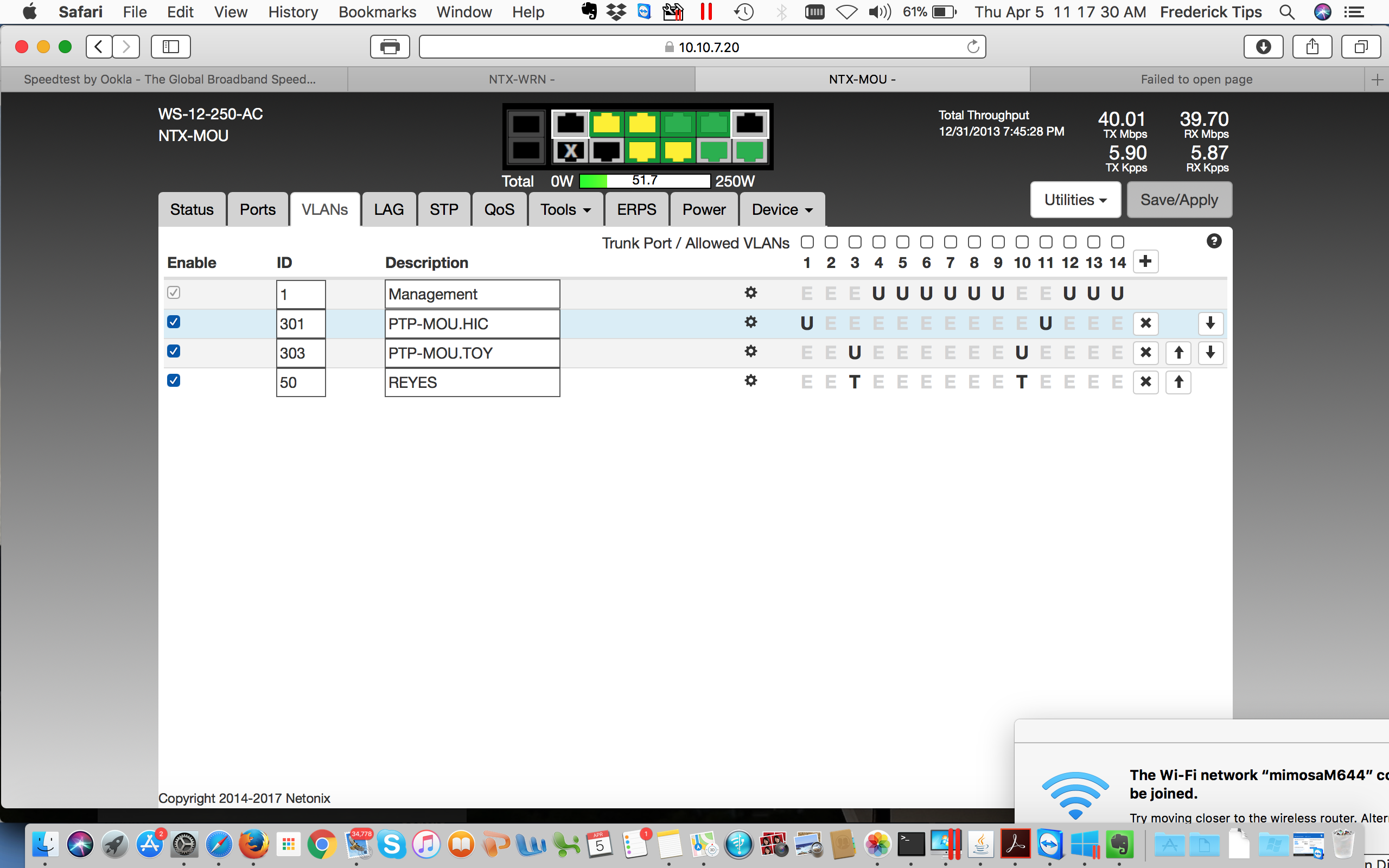 We have a Netonix 12 port 250w AC switch with 4 vlans
