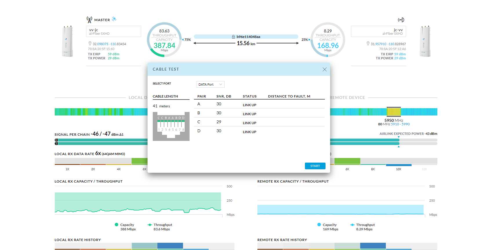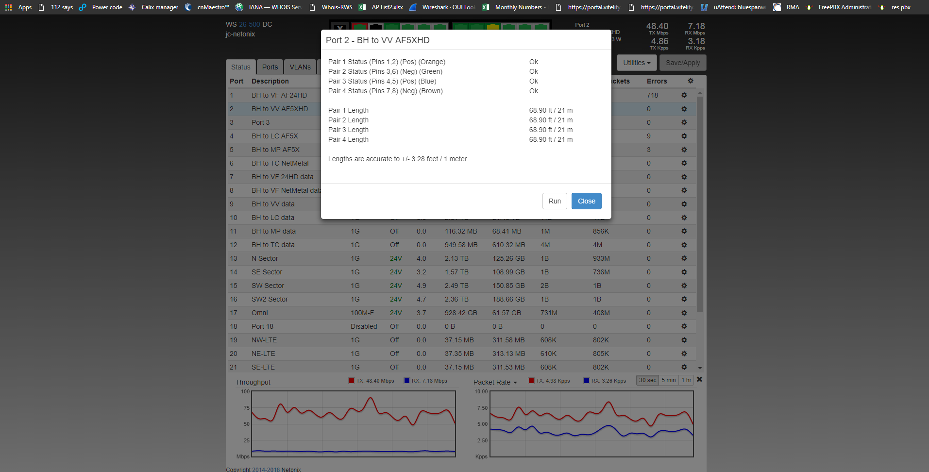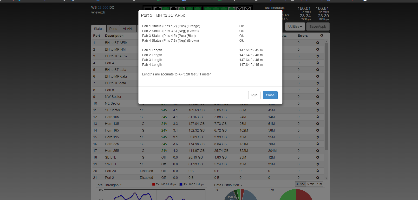 Here is a screen grab of the equipment while power on we will need a tech to go on site to see what the cable test shows when powered down.