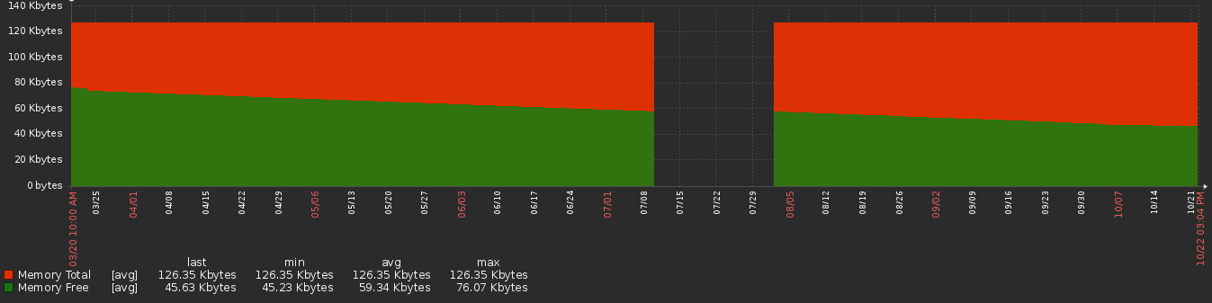 I've got a few WS-12-250-DCs across my network and I'm seeing the free memory all both of them slowly drop over the period of about 10 months.