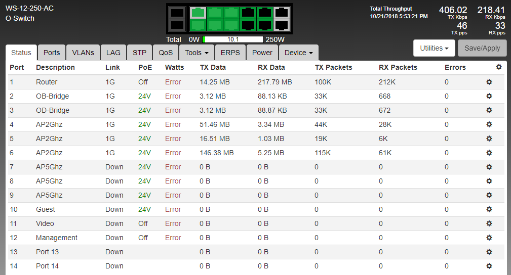 I recently purchased the WS-12-250-AC, the minute I plug multiple PoE devices on it the screen changes with Error under the Watts column. The status screen shows errors as well plus the fan is always running regardless that this switch is in a temperature control room. I have reset the switch multiple times and uploaded the firmware with the v1.5.0 release. Should this be sent for RMA? Please advise…