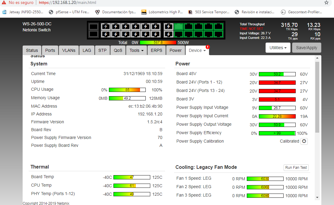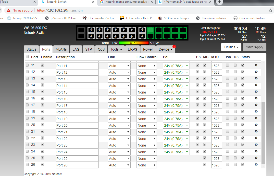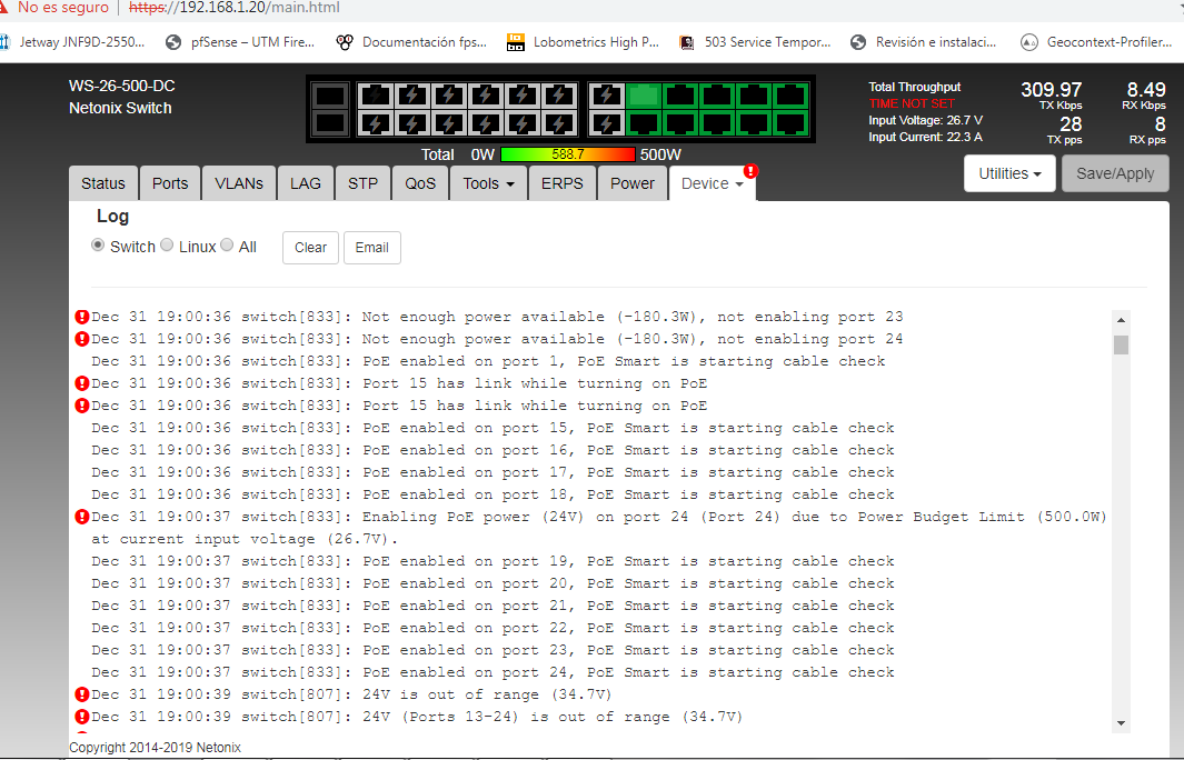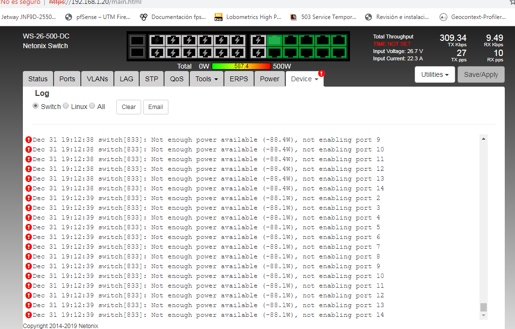 Hello, I have a new model WS-26-500-DC, in the first laboratory tests all right until just before implementing this "Not enough power available not enabling port" appears, please I need help, some update or directly an RMA ??