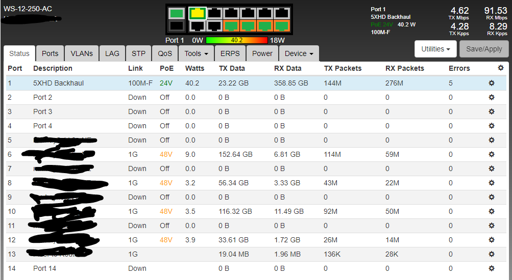 We have a Netonix that is acting up. It was on 1.4.7 and it showed power usage on each port but Port 1 was inaccurate showing 40 watts so I did an upgrade to 1.5.3 and now the power doesn't show anywhere on the status page except on the top of the page. It used to show up in the table next to each port.