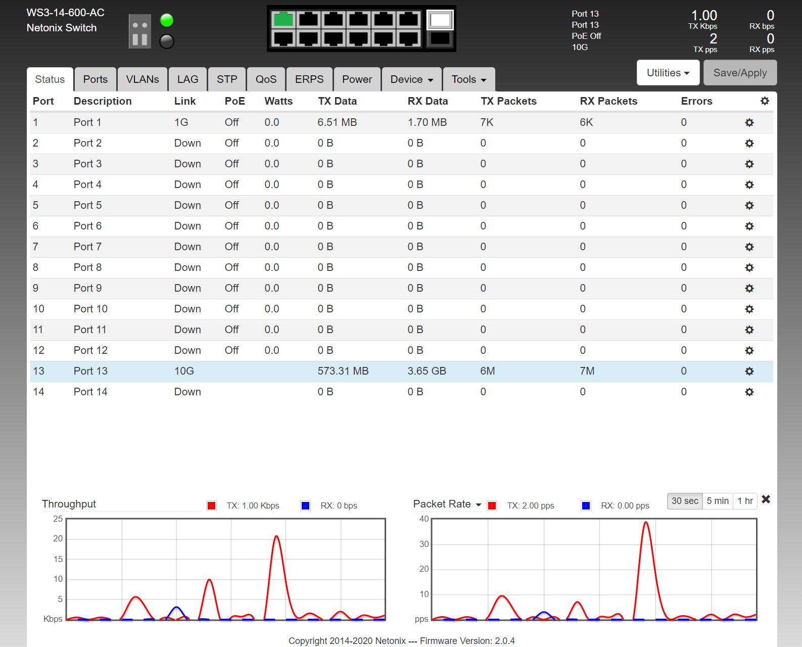 Can you share screenshots of the Status, Ports and Device->Status tab?
