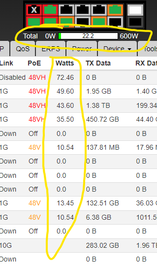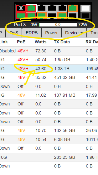 we find a problem in displaying the power supplied on the individual ports and in the total, below are the photos: