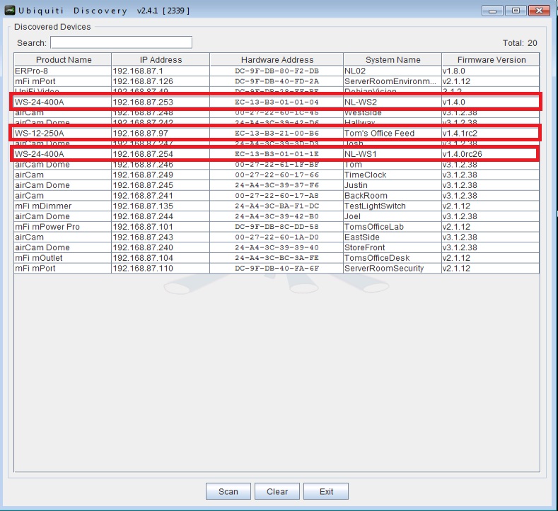 Here is what it shows (minus the IP address) Normal discovery Firmware 5.6.5 on device