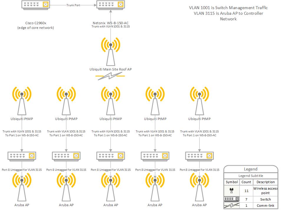 It all works in terms device communications, all the switches and Ubiquiti AP's are managed with the Cisco core switches on LAN 1001.