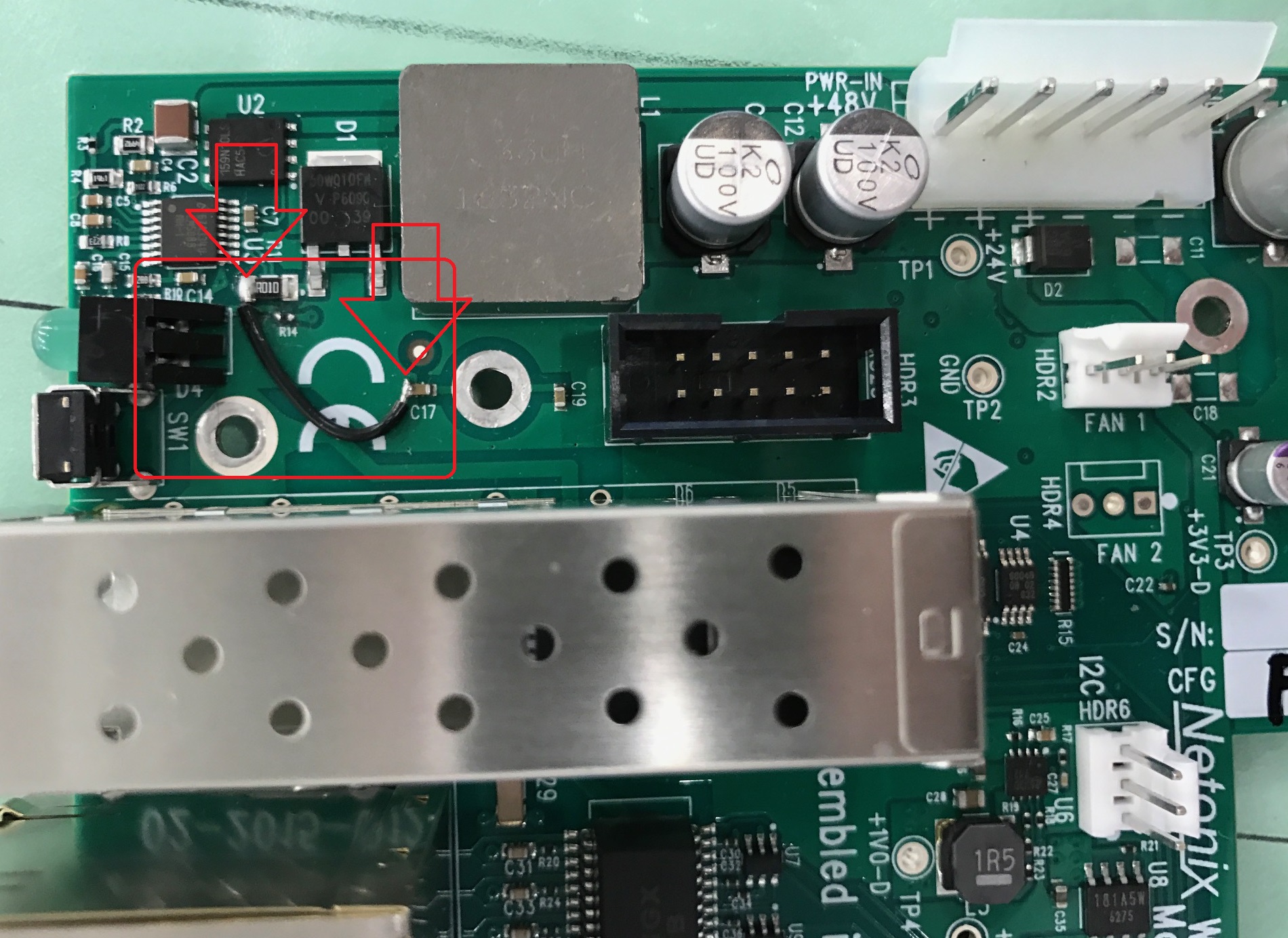 If anybody cares, could you confirm that I did this mod correctly on this WS-12-250-AC-REV_B ?? The board layout is slightly different, but TP4 GND should be OK according to the instructions.