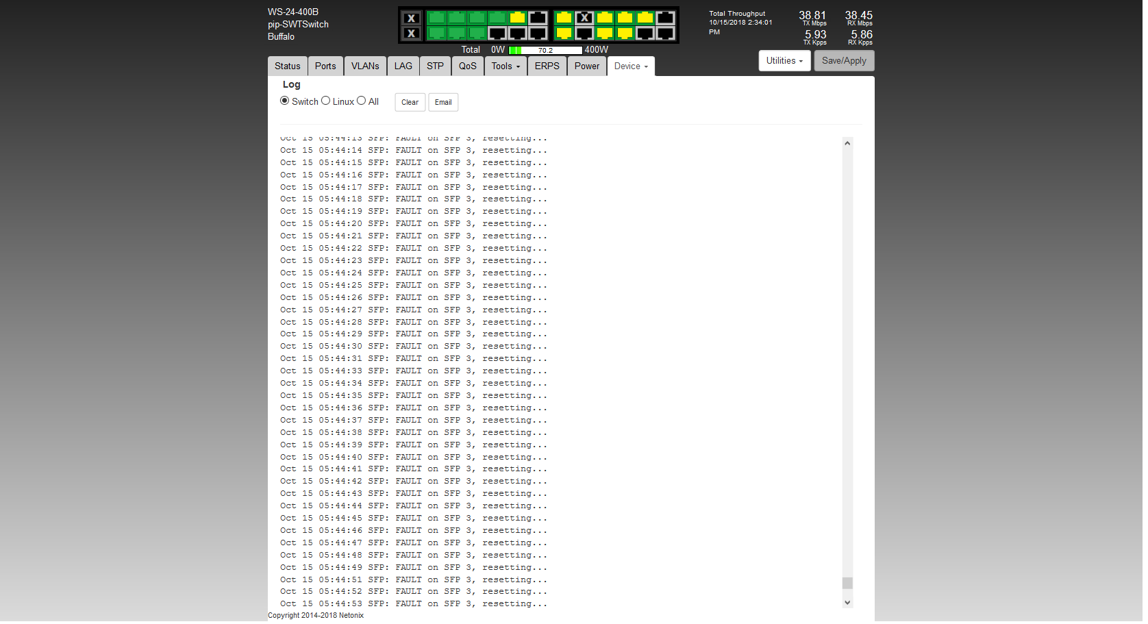 Re: Oct 15 04:58:53 SFP: FAULT on SFP 3, resetting...