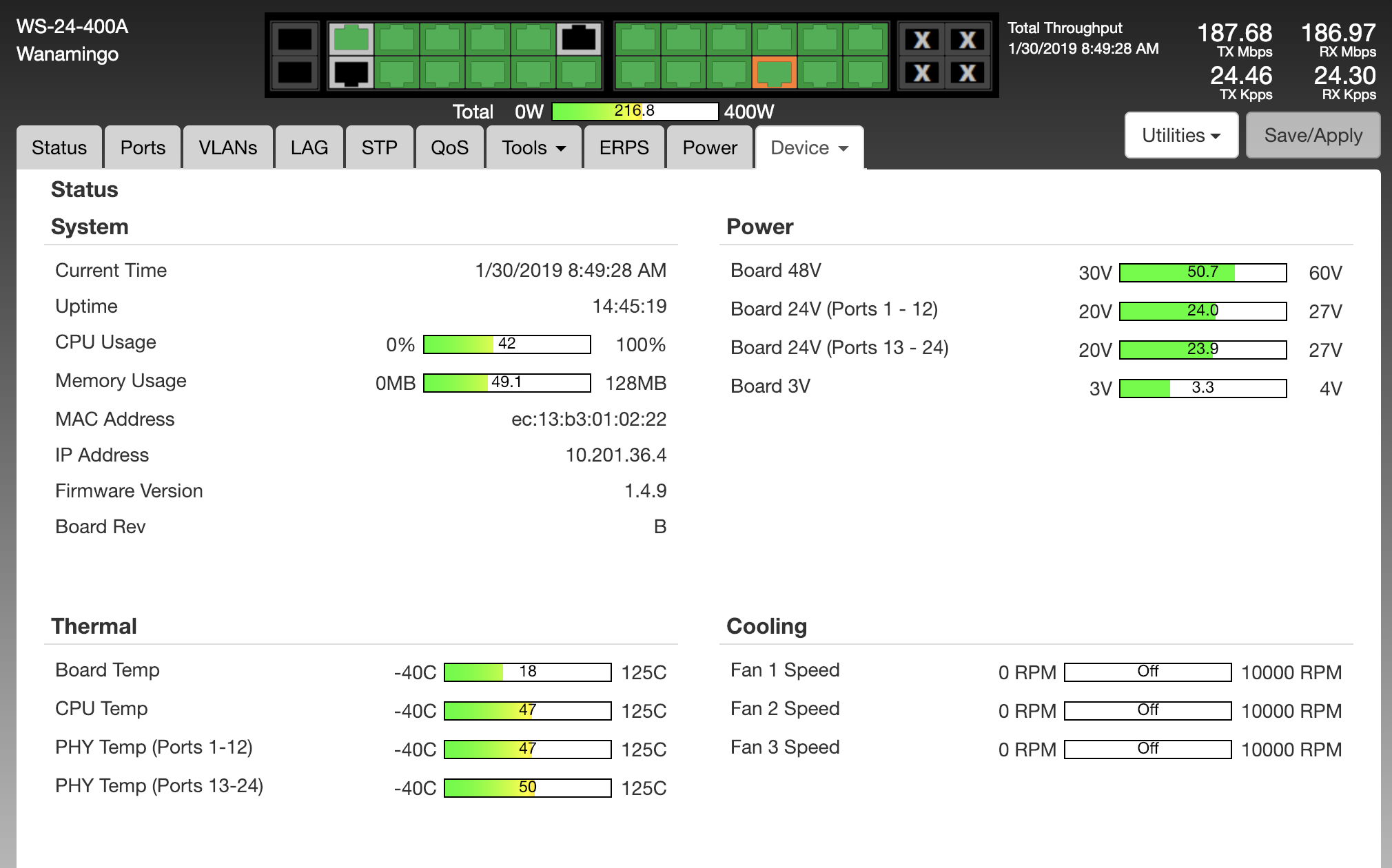 Jan 30 01:22:04 Port: link state changed to 'up' (100M-F) on port 12