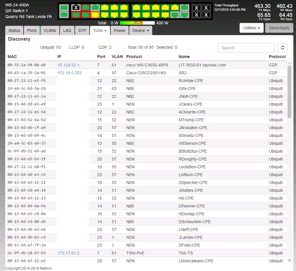 sirhc wrote:cbl wrote:#2. On one Ws-24-2400A we have a bunch of UBNT Titaniums. We've experienced the port lockup on these when set to Auto and have forced to 100FD on both the switch and AP to get around the AP deciding to become unreachable. One AP on this switch after update (from 1.3.9) was showing Tx Drops/Collisions incrementing, whereas before the upgrade it was not.