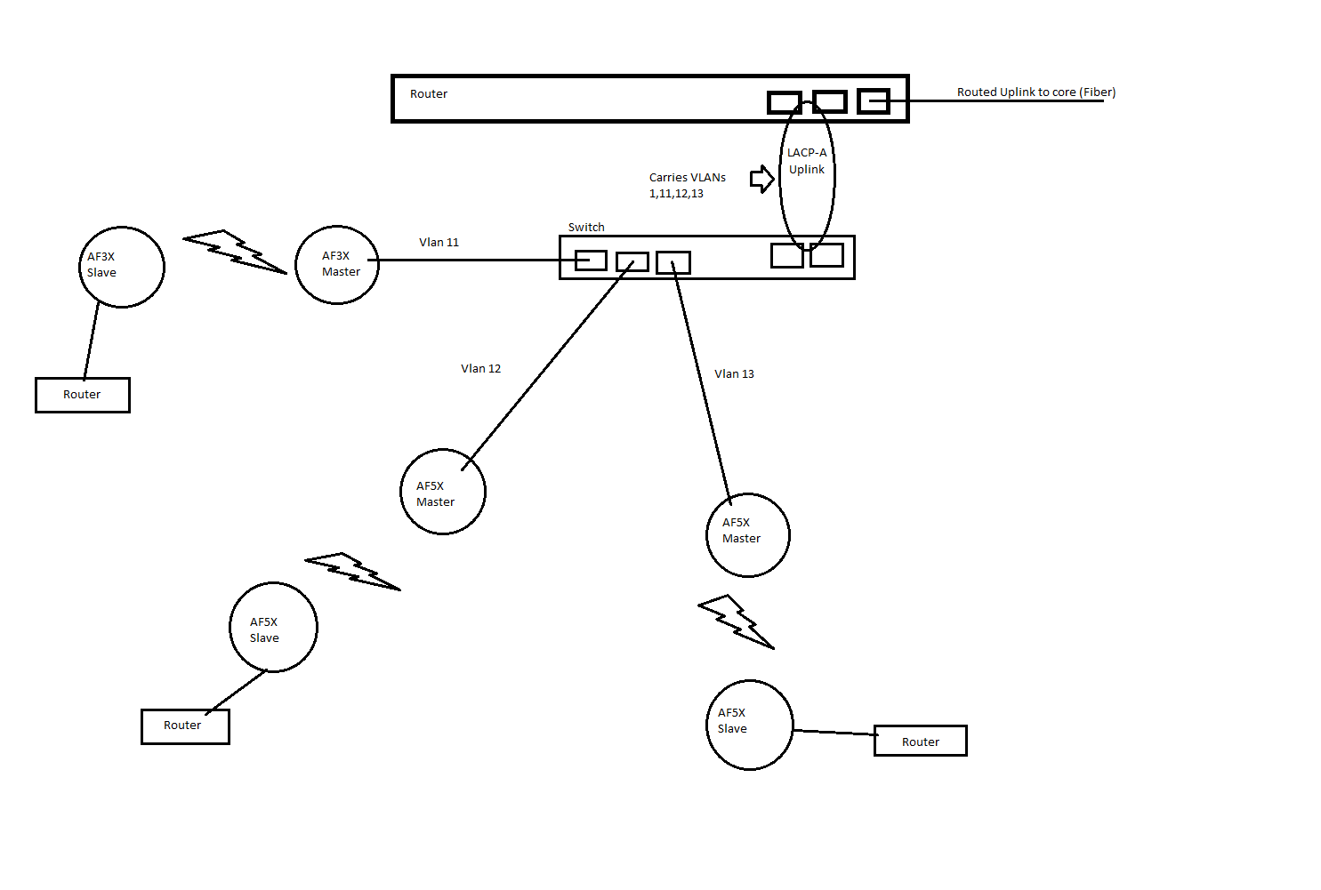 http://wiki.mikrotik.com/wiki/SwOS/Router-On-A-Stick Anytime one of the Airfiber Slaves (remote end) goes down and breaks the link to the Master (local switch end) for any reason (power loss, soft reboot, setting change) it causes all traffic for every backhaul to go down, drops my connection to the Netonix switch, and even appears to temporarily stall the tower router (CCR1009) as well.