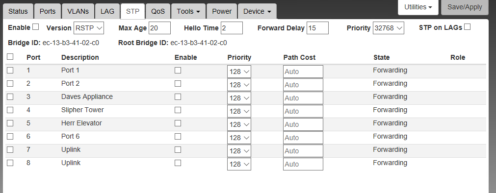 Jan 14 20:30:26 UI: Port 8 STP: changed from 'Enabled' to 'Disabled'