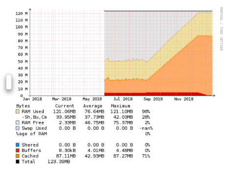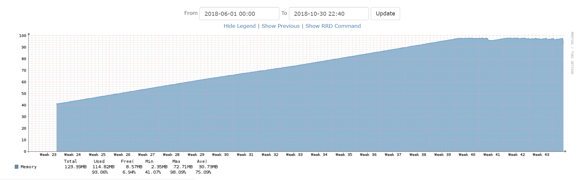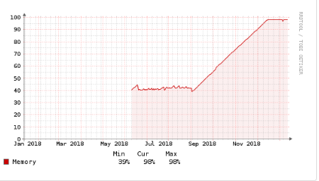 This unit was updated to 1.5.0 at the start of September and as you can see, memory usage was fine up until then and then slowly increased until finally rebooting today. Are you still going to argue there is no memory leak or something similar?