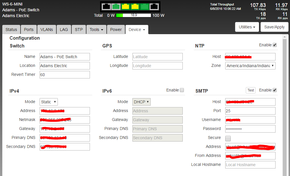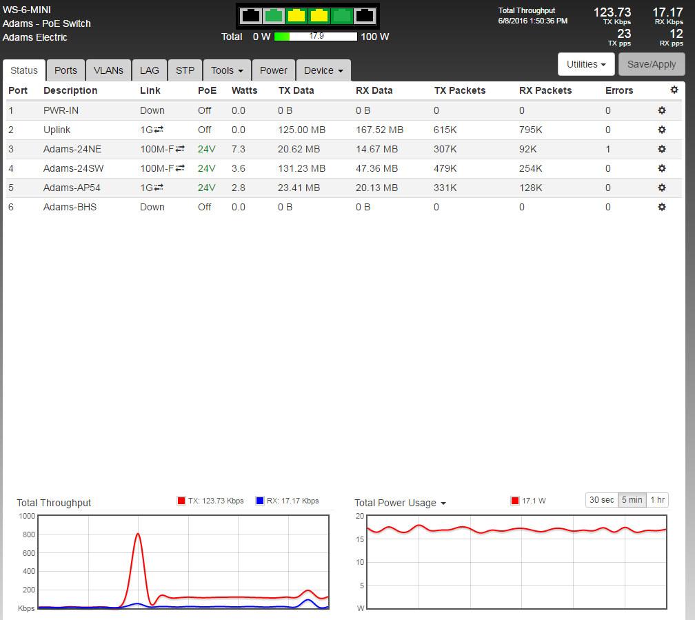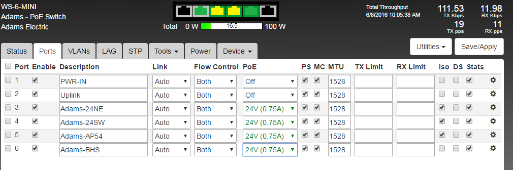 Mikrotik is NOT being powered by the switch. Currently there are no customers on the tower so power usage stays fairly low.