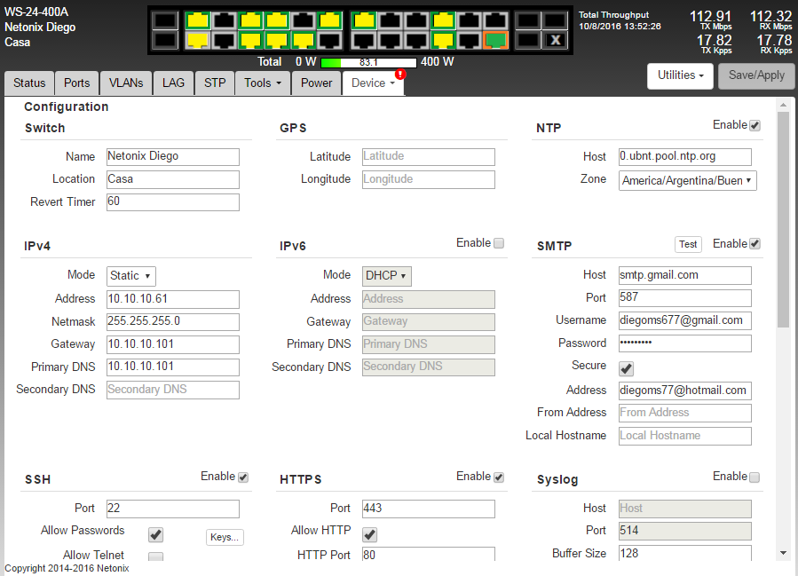 Aug 10 14:41:37 Port: link state changed to 'up' (1G) on port 1