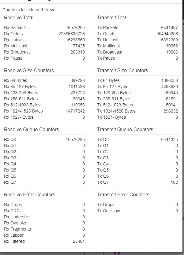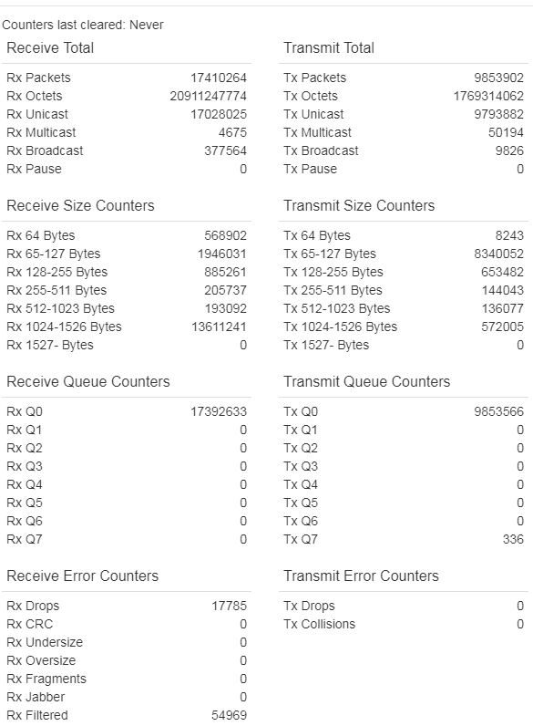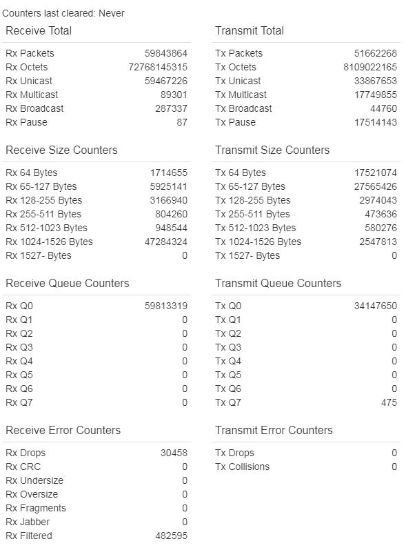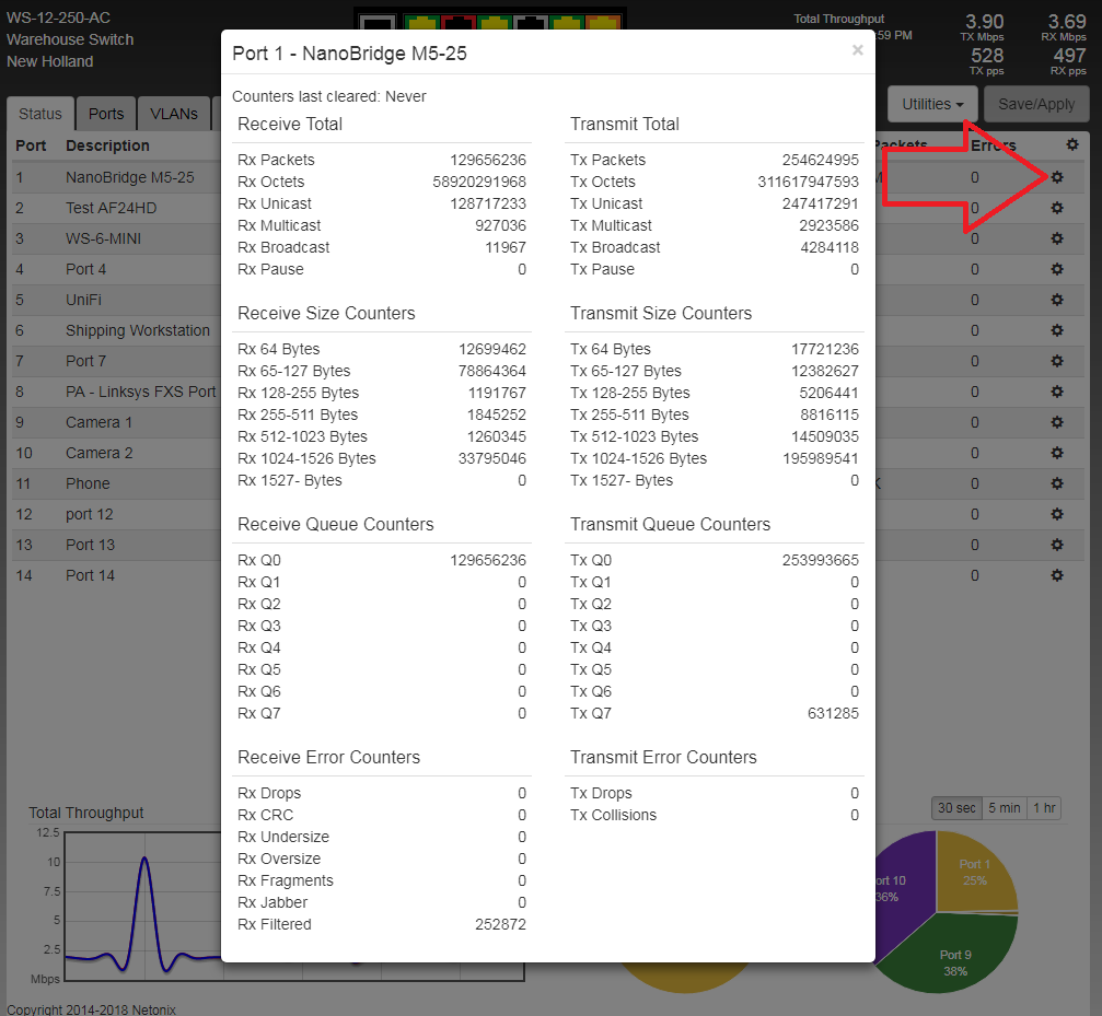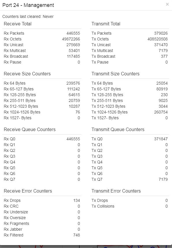 Did you look at the port statistics in the switch by clicking on the little gear to right of the port row and select Port Details from the pop up?
