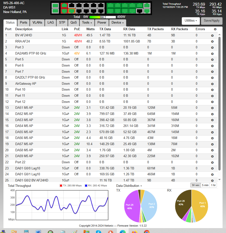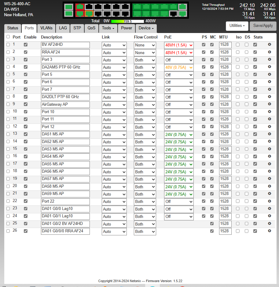 Note: Whereas 2 towers (BV and VR - lightly loaded) still run original Rocket M5 most towers including DA screen shots are Rocket 5 AC Lite or AirPrism Gen 2, just never went back and renamed port descriptions.