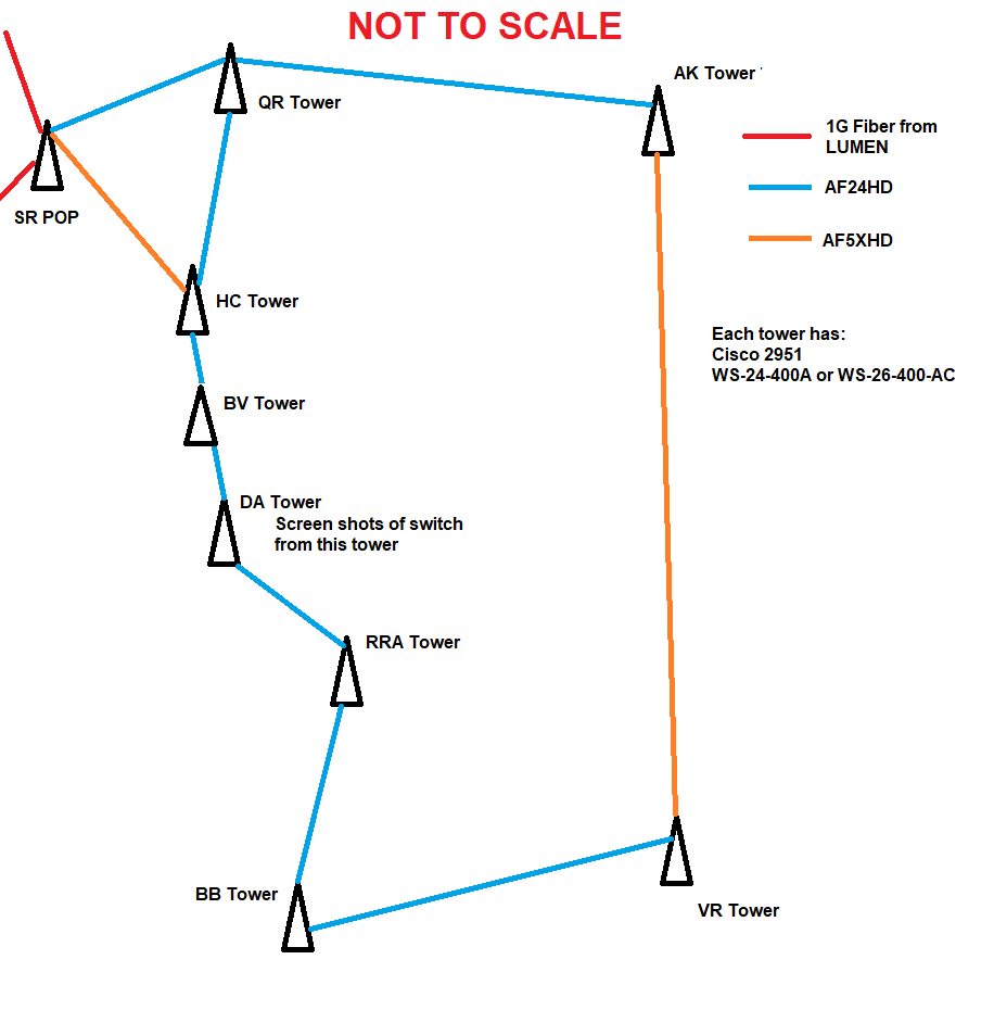 So here is my network (OSPF Ring) and 1 of my towers switch TABs that have any changes, see pic below: