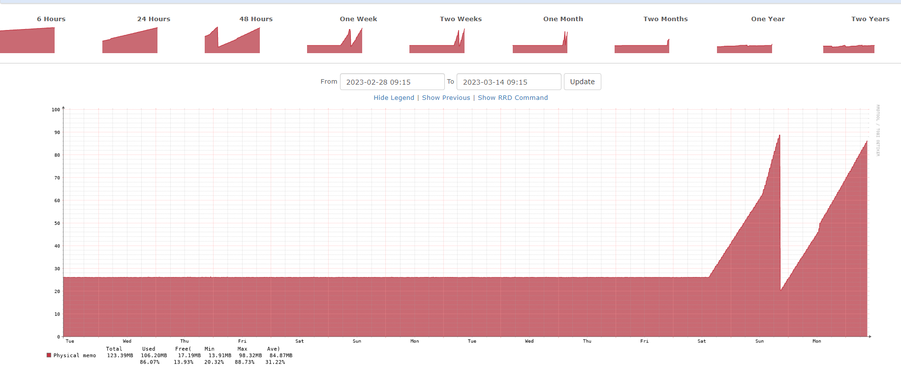 What happened Sunday to free up the memory? Did the switch crash/reboot?