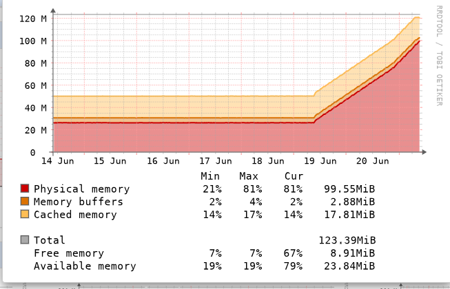 What did change on Saturday was one of the WATCHDOG targets started failing as the target site was upgraded with a new IP address. This would imply there is a missing delete[] call(s) somewhere in the watchdog subroutine(s)
