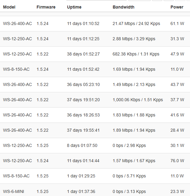 I cannot validate any of the values shown in the bandwidth column (I don't know if that is an average over some time, a snapshot at the last refresh, ??) but I've only seen zero in the first number for switches at 1.5.25. The 3 switches at .25 in the screenshot have 1 or more cameras on them and always have traffic.