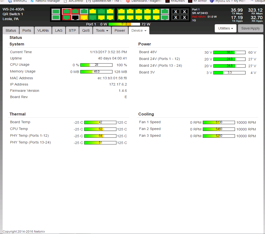 At RF Armor / Netonix we have a WS-12-250-AC and several other switches we use to test firmware and serve the office and no flapping ports?