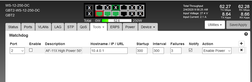 This all started happening after I tried using Watchdog to power up the port 1 if during the 1-8am period, a ping failed.