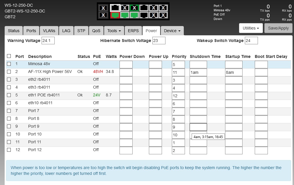 Port 1 shuts down 1-8am, then comes up, a few minutes later it shuts down and is stuck down, no power draw, yet the GUI says it is on: