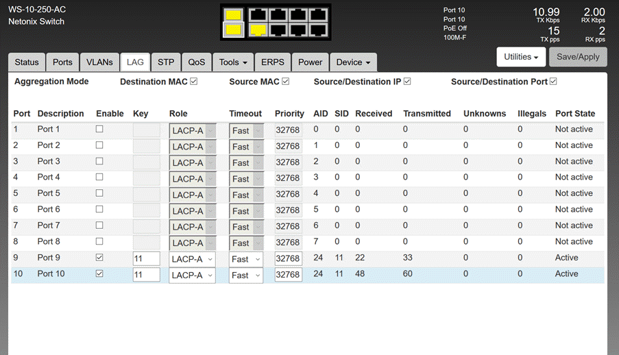 Here's a screenshot of the LAG configuration page: