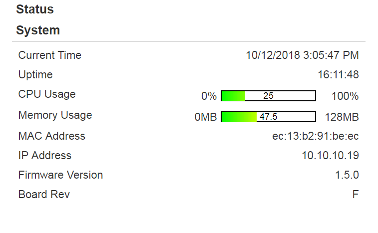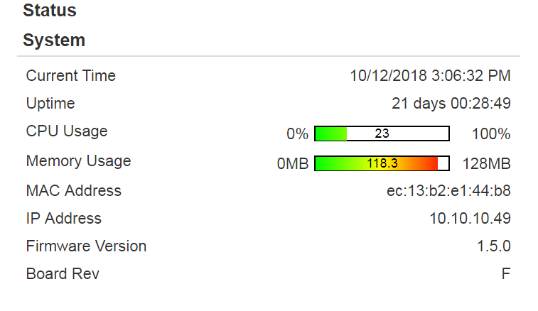 Pics are from the same switch that rebooted itself last month. Seems to happen a few days after i see a memory spike. As a test before i upgrade to 1.5.1rc8 I rebooted the unit to see if memory usage would go back down and hopefully prevent an issue with the upgrade. As you can see the memory usage went down dramatically after just a reboot. Will let u know if i have the same issue running the current FW version.