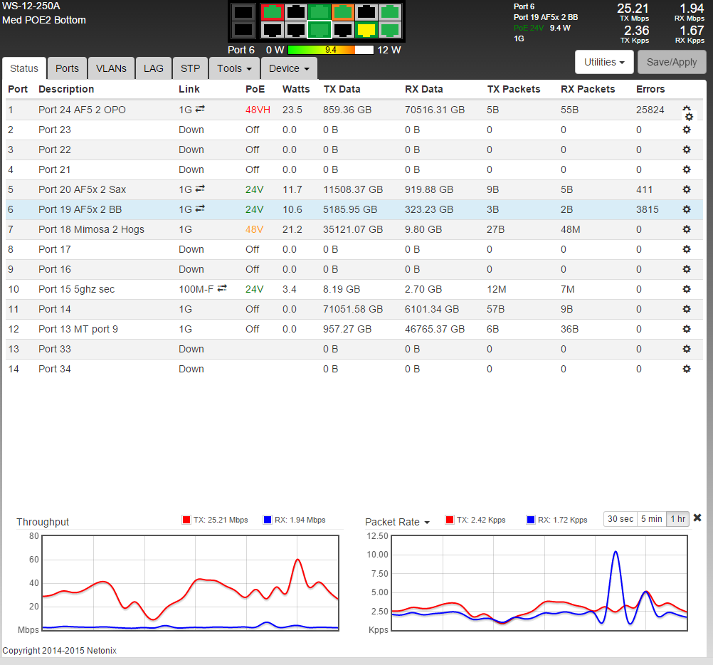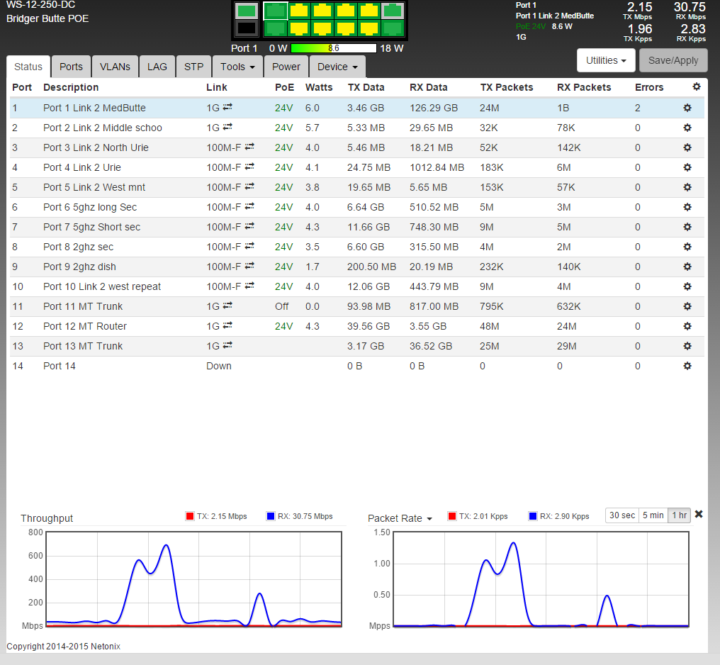 This is between two sites I have with netonix switches. They are linked with 2 AF5x's. I was looking at my router and noticed a ton of RX pause requests and there was no reason for it. I was able to be on the switch and the router when this event happened. One side just randomly had RX rates that are impossibly high. when this was happening it caused the link to slow to a crawl.
