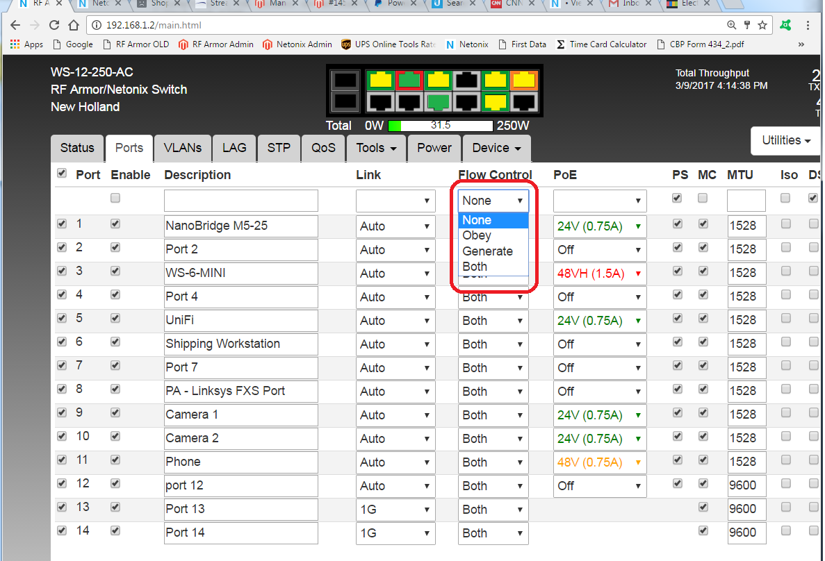 Chris, he's talking about flow control, not PoE. He only used the PoE dropdown to show what a blank option is.