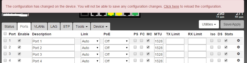 What version is running on the switch? Make sure you're on current firmware or even the latest RC.