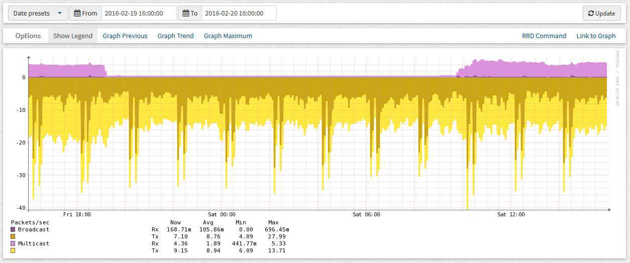 The graph is what happened after we removed the MC check mark on all ports. We did NOT notice the affect at the time. However when the leases ran out on the end users devices, and those devices did a DHCPREQUEST to reaffirm the current IP that traffic was blocked, however a device will keep its last known IP. If a end user did a reboot of their router then there would be NO IP and a DHCPDISCOVER would be blocked also. The net effect was no IP so no service.