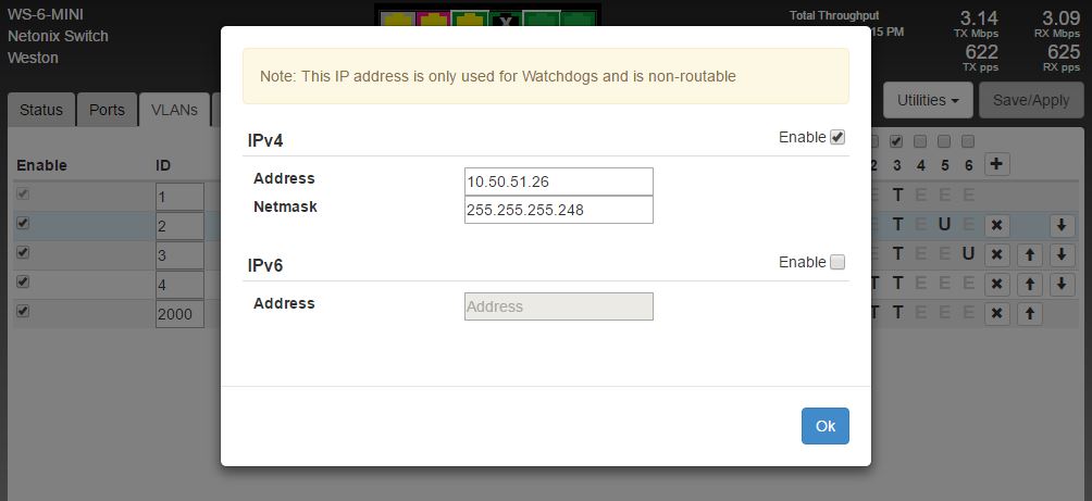 For each of the two vlan's with ID "2" and "3" we have set a non-routable IP in the netonix.