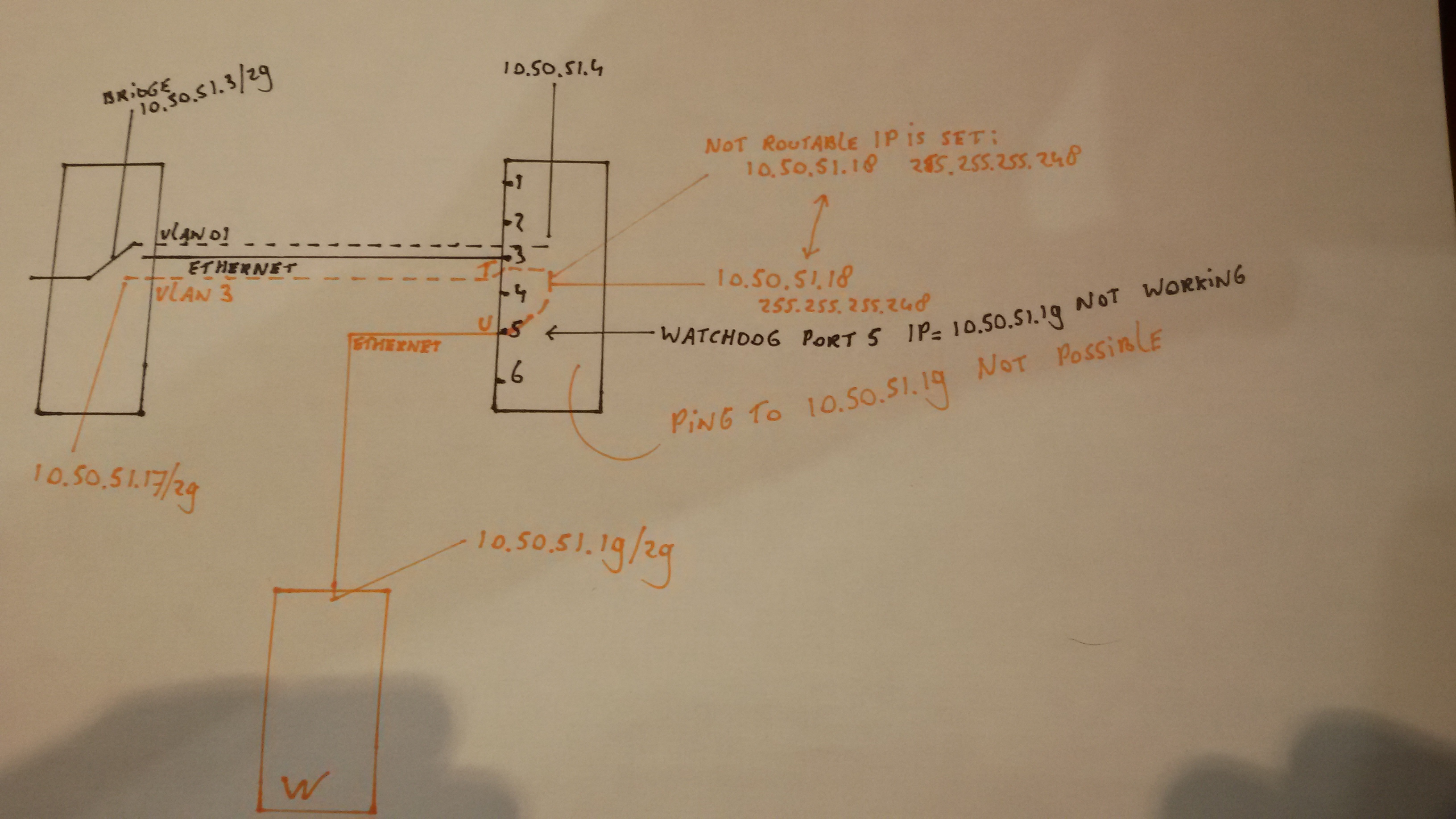 I have a WS-6-MINI connected to router-A- on port 3 where administration IP is set to 10.50.51.4 and unit is well reachable on that IP through that port and watchdog is set to watch the router. Router gets power from de mini so if ping fails router is rebooted and since router-A- has backhaul to central we hope to get access back in case of disaster....