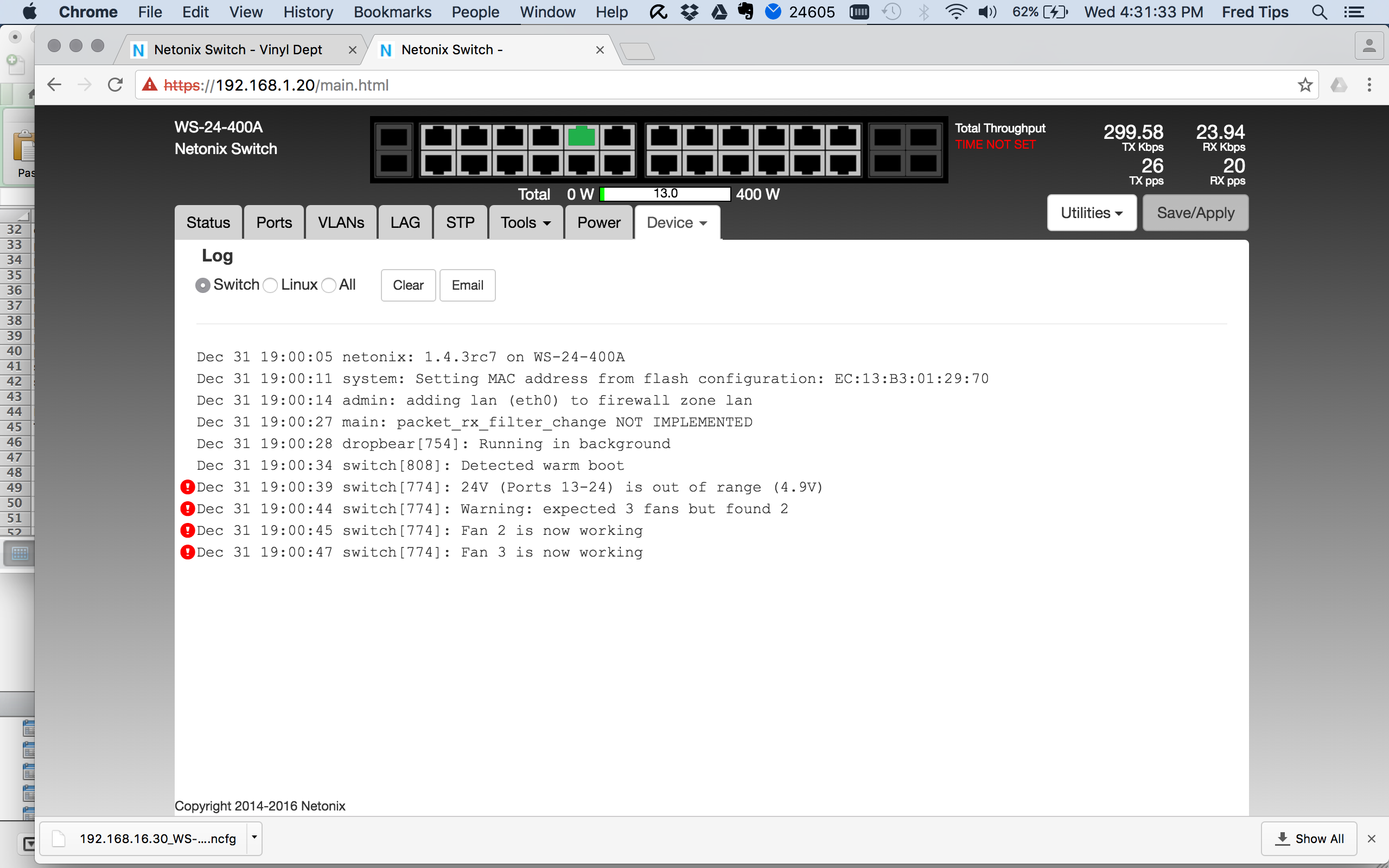 Unboxed a 24port 400a switch today, upgraded to latest firmware and getting the following errors ... see attached
