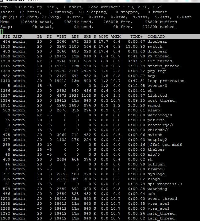 Running top gives multiple dropbear processes - ssh access is quite slow.