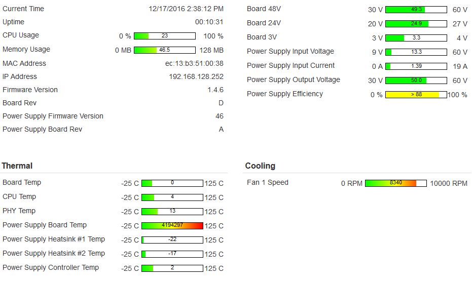 Because the switch thinks the temperature is so high, the fan kicks in at 8000-9000 rpm. The Power Supply Heat Sink temperatures are both at -12C.