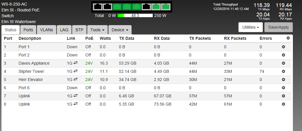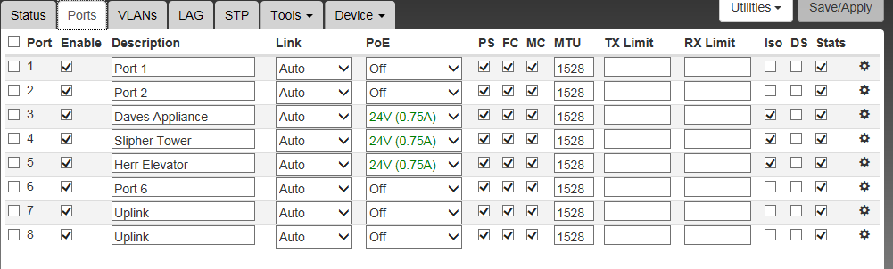 Please leave the Port Descriptions visible, I have no idea why people block that out, hopefully the port descriptions tell me what is on the ports.